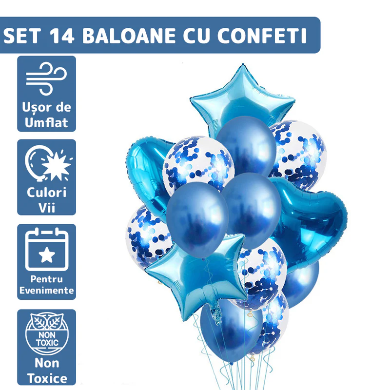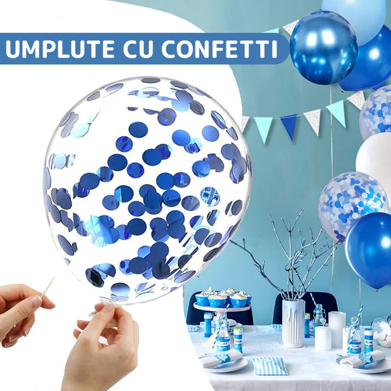- Calitate superioară: Latexul de înaltă calitate asigură durabilitatea baloanelor și o umflare uniformă, iar confetinii sunt siguri și non-toxici.