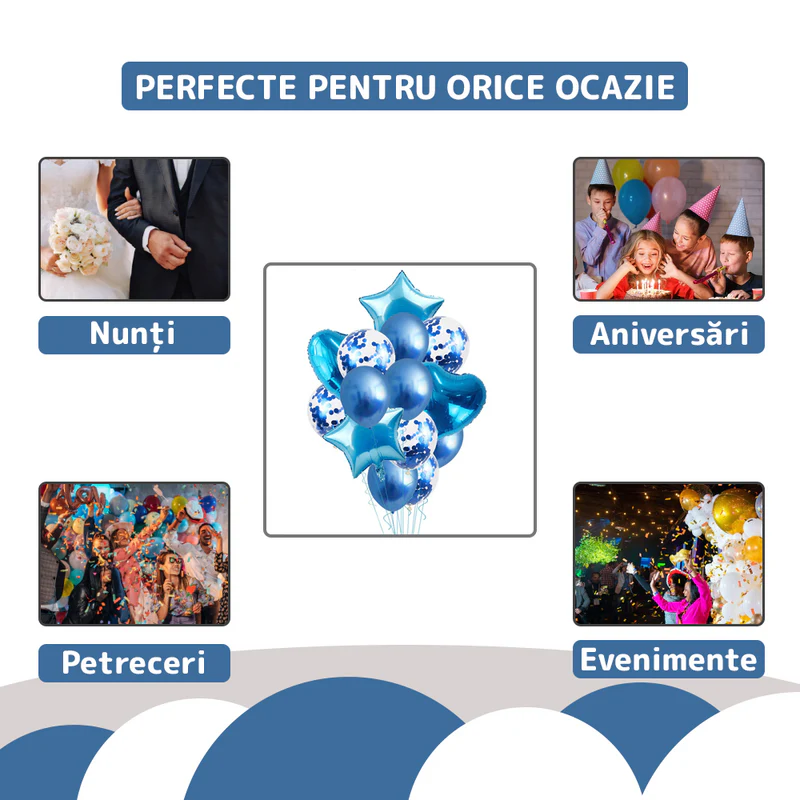 - Culori elegante: Nuanța de albastru conferă baloanelor un aspect sofisticat și romantic, perfect pentru o gamă largă de evenimente.