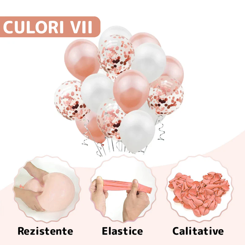 - Material: Baloanele sunt confecționate dintr-un latex de înaltă calitate, fiind flexibile și rezistente.