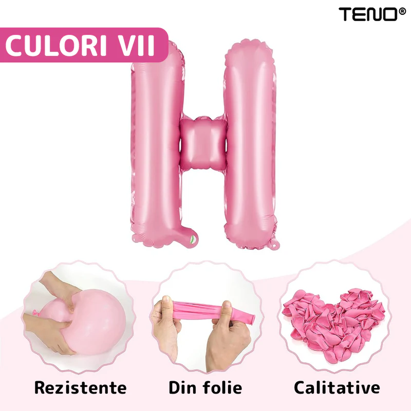 - Model personalizat: Baloanele cu litere formează cuvântul “Happy Birthday”, personalizând astfel orice petrecere.