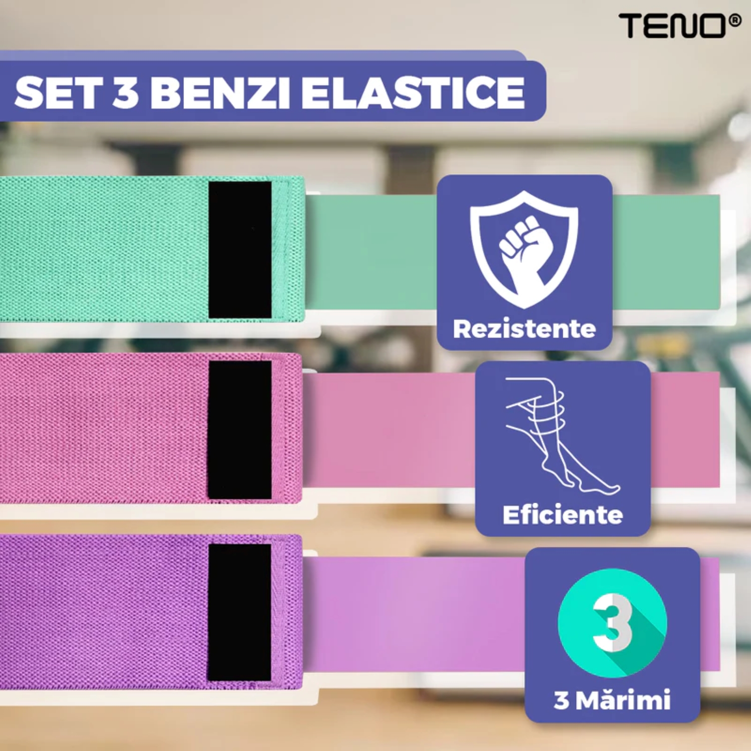 - 3 niveluri de rezistență: Fiecare bandă are o rezistență diferită, permițându-ți să progresezi treptat și să adaptezi exercițiile în funcție de nivelul tău de fitness.