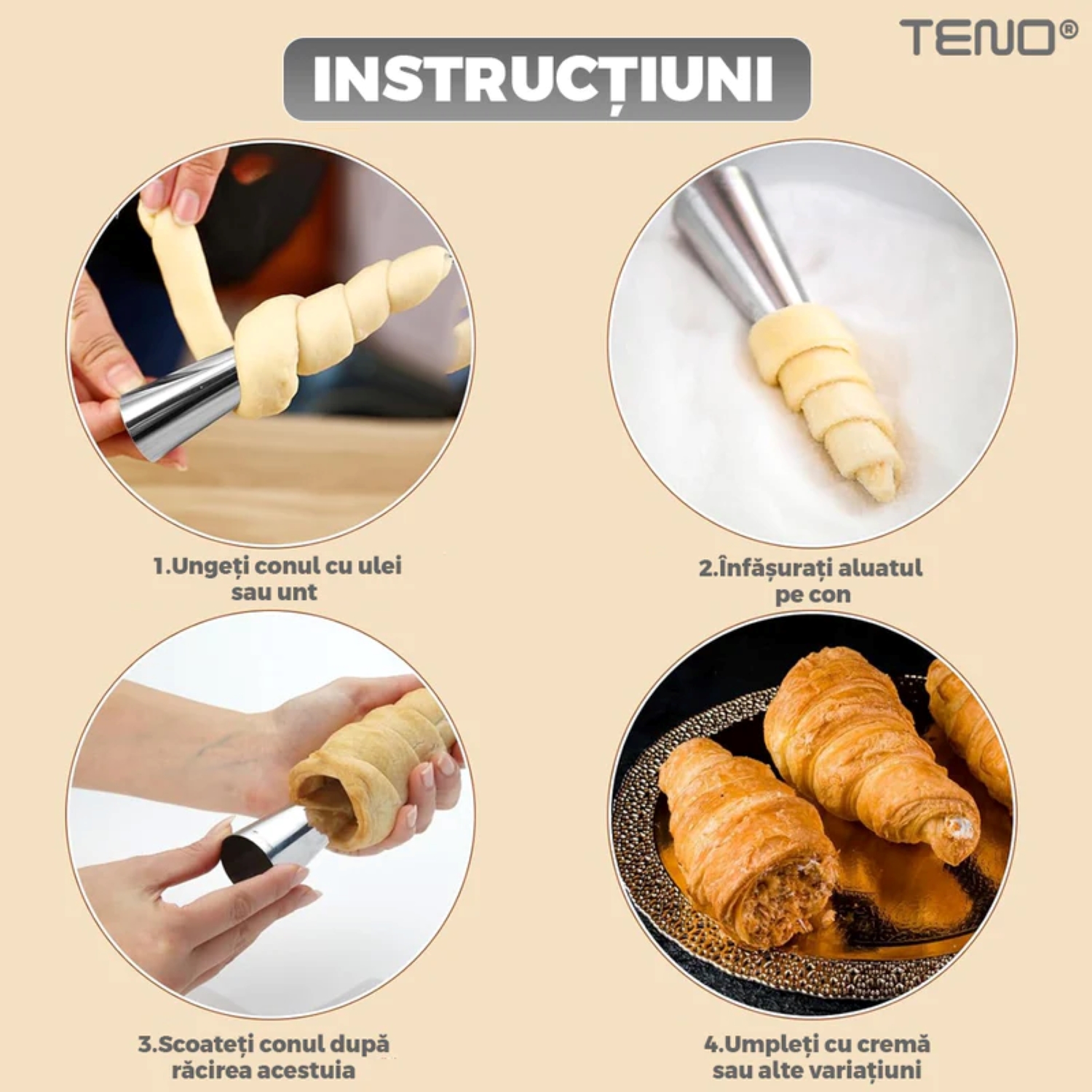 - Versatilitate: Ideal pentru o gamă variată de rețete: cornete cu înghețată, cannoli sicilieni, cornulețe sărate, mini-pizza, etc.