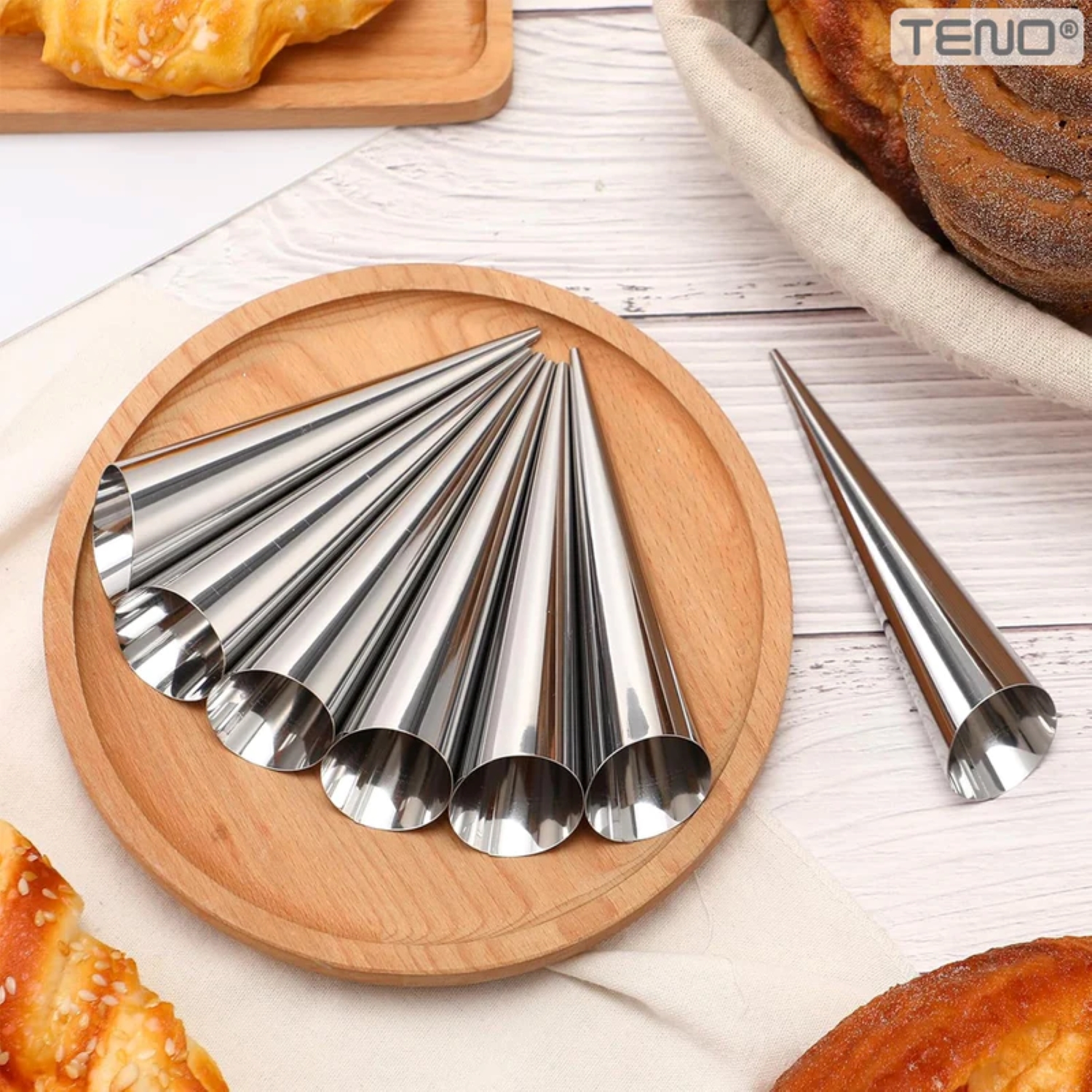 Transformă-ți bucătăria într-un laborator al creativității culinare cu setul de 5 forme de copt pentru rulouri. Aceste forme conice, realizate din oțel inoxidabil de înaltă calitate, îți oferă posibilitatea de a crea o varietate de delicii, de la cornete delicioase până la cannoli tradiționale sau cornulețe savuroase.