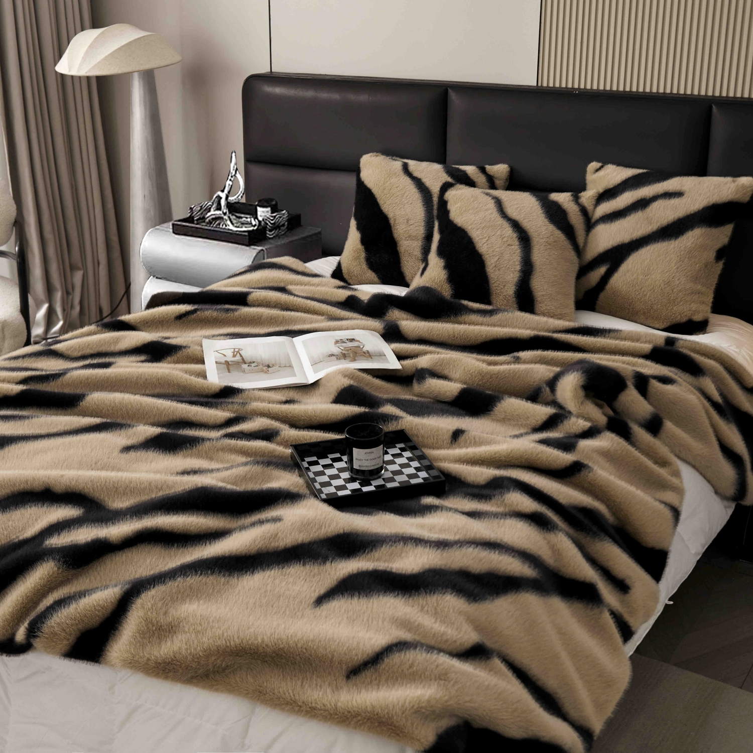 Set-ul de pat dublu compusă din 3 piese cu blanită artificială de nurcă este un set luxos de lenjerie de pat care oferă confort suprem și căldură. Fiecare set include pătură și două fețe de pernă 50×50 +5cm, toate finisate cu o blanită moale și pufoasă de nurcă pentru un somn odihnitor și o estetică elegantă. Acest set pentru pat adaugă o notă de rafinament și calitate la orice dormitor.