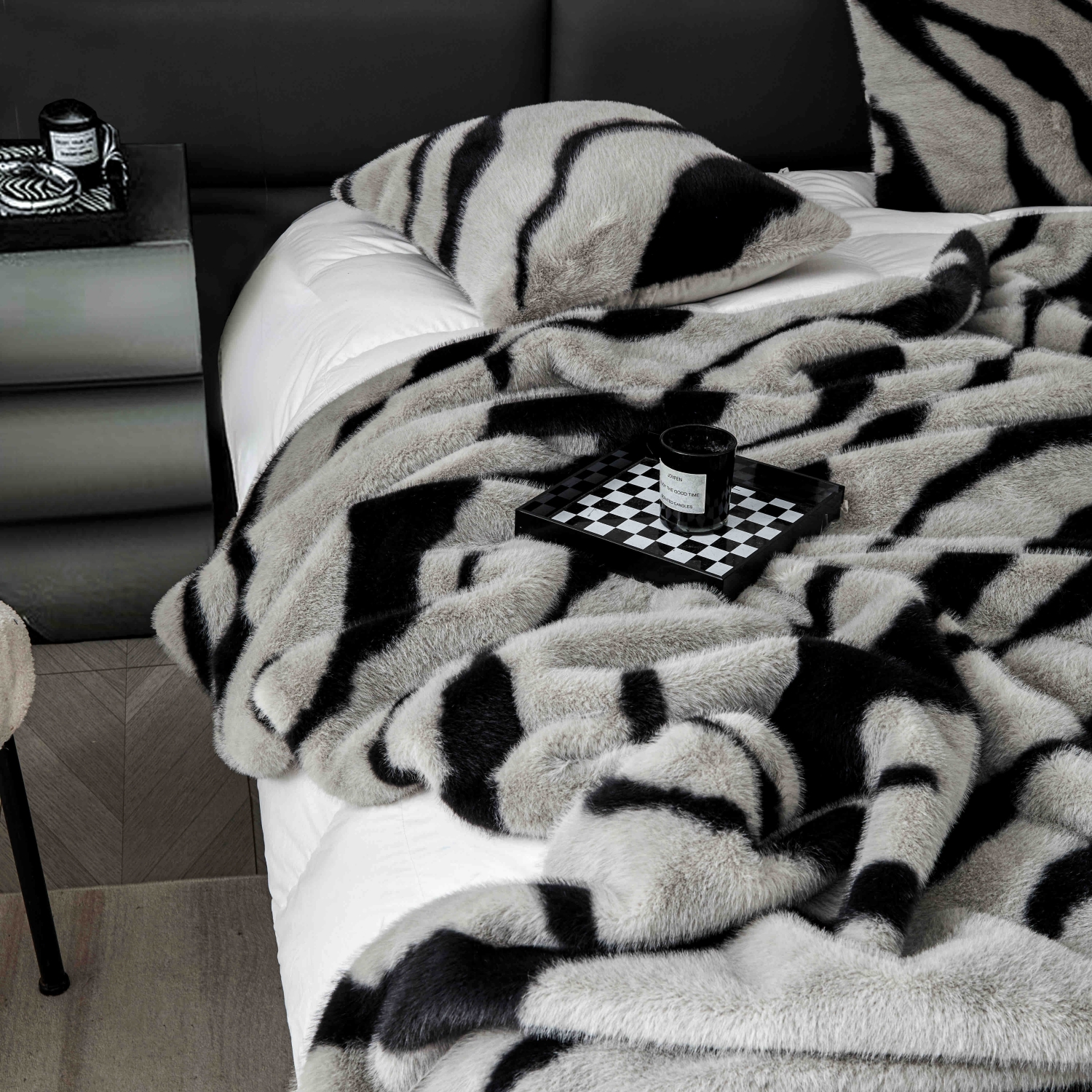 Set-ul de pat dublu compusă din 3 piese cu blanită artificială de nurcă este un set luxos de lenjerie de pat care oferă confort suprem și căldură. Fiecare set include pătură și două fețe de pernă 50×50 +5cm, toate finisate cu o blanită moale și pufoasă de nurcă pentru un somn odihnitor și o estetică elegantă. Acest set pentru pat adaugă o notă de rafinament și calitate la orice dormitor.