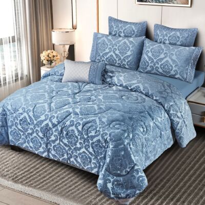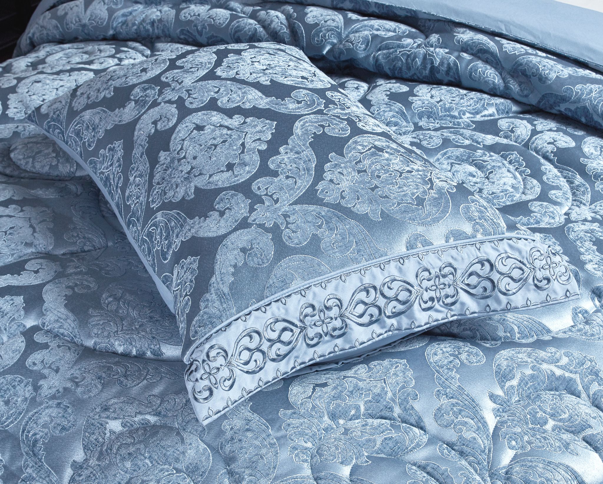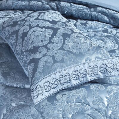 Lenjeria pentru pat tip Jacquard este intruchiparea rafinamentului, fiind o lenjerie de lux, cu broderie si materiale foarte bine alese ( Bumbac 100% Damasc ). Aceasta lenjerie Jacquard este moderna si rafinata, aducand o lumina noua oricarui tip de locuinta, iar aspectul boem si confortabil al acestei lenjerii este dat de broderia superba si de tesaturile fine, cu luciu, placute la atingere. Lenjeria de pat Jacquard este ideala pentru a conferi o nota de eleganta si delicatete oricarui dormitor, materialele folosite fiind deosebit de placute la atingere garantand un somn linistit si total satisfacator.