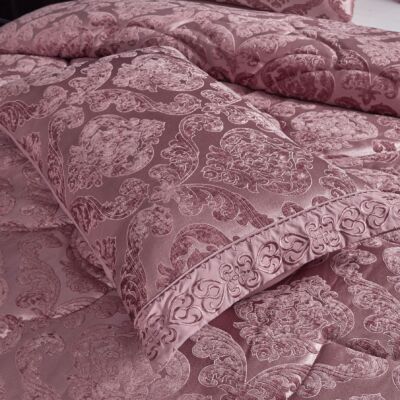 Lenjeria pentru pat tip Jacquard este intruchiparea rafinamentului, fiind o lenjerie de lux, cu broderie si materiale foarte bine alese ( Bumbac 100% Damasc ). Aceasta lenjerie Jacquard este moderna si rafinata, aducand o lumina noua oricarui tip de locuinta, iar aspectul boem si confortabil al acestei lenjerii este dat de broderia superba si de tesaturile fine, cu luciu, placute la atingere. Lenjeria de pat Jacquard este ideala pentru a conferi o nota de eleganta si delicatete oricarui dormitor, materialele folosite fiind deosebit de placute la atingere garantand un somn linistit si total satisfacator.
