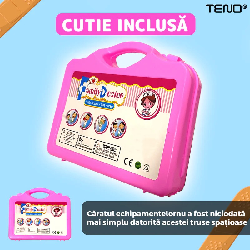 Acest set de trusă medicală este mult mai mult decât o simplă jucărie. Este un instrument care stimulează imaginația și curiozitatea celor mici, încurajându-i să exploreze lumea fascinantă a medicinei.
