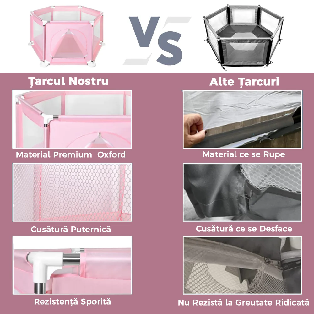 Țarcul/Locul de Joacă pentru Copii este un spațiu de joacă sigur și confortabil, ideal pentru a le oferi celor mici un loc unde să se joace și să exploreze în siguranță. Acest țarc este ușor de montat și confecționat din materiale de calitate, fiind o alegere excelentă pentru părinții care doresc să creeze un loc de joacă dedicat în propria locuință.